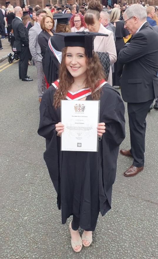 After trading an art and design course for at , she’s graduated from University Centre Reaseheath with a BSc (Hons) in Animal Management (Behaviour and Welfare), a research presentation under her belt, and a renewed confidence in herself.